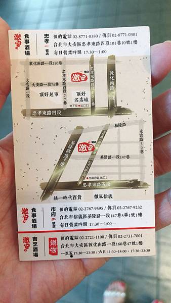 餐廳資訊連名片都設計的狠美,王品集團又一最新力作,當然要搶先嚐鮮,只接受定位,記得要定位喔⋯⋯